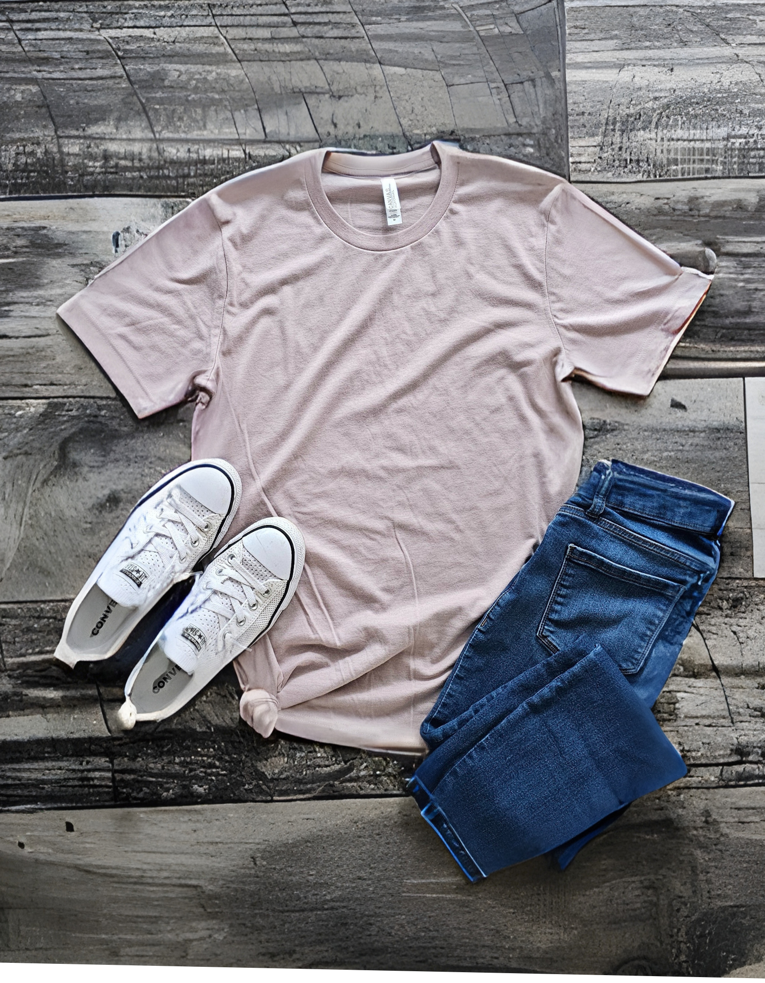 - T-Shirt design is shown alongside of each blank t-shirt color option.